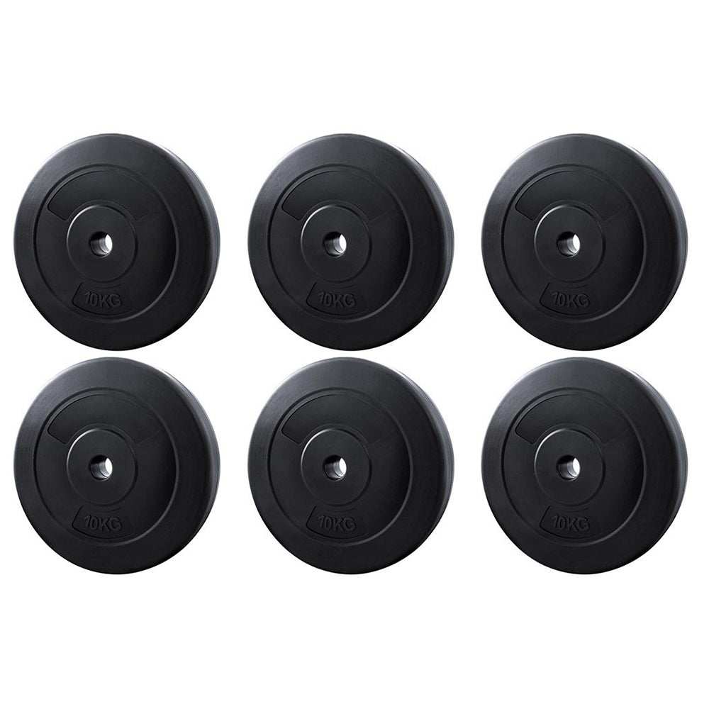 Strong and sturdy, these Home Gym Weight Plates will allow you strengthen and tone your muscles at home with ease. The 60kg weight plates are made from cast cement and covered with robust, floor-friendly rubber, so you can work out without damaging your floors or disrupting neighbours. Easily add and remove plates to ensure an appropriate work out for your individual fitness regime. Choose more from our Fitness Range – good for your body, and with our reasonable prices, good for your wallet!