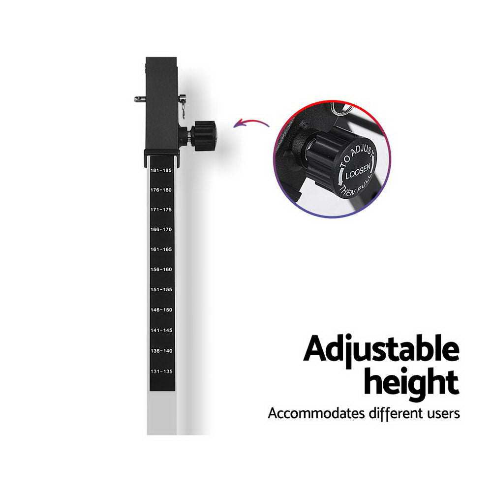 If you often suffer from back pain after a day of work, our Everfit Inversion Table may be the solution for you. Hanging upside down can help you improve flexibility, reduce nerve pressure, realign the spine and relax tensed muscles. The extra wide backrest is padded with high-density foam to provide you with adequate support and comfort. Inversion is adjustable up to 180� with three pre-set locking positions too. A safety belt and locking ankle clamp always keep you securely in place, the removable cushioned lumbar support provides added comfort, and the padded U-frame handles ensure that you always have a firm grip and can easily return to the upright position. The sturdy frame is constructed with industrial-strength powder-coated rust-proof steel and can support a maximum weight of up to 120kg. The height can be adjusted to too, to accommodate all users. Best of all, the inversion table is foldable so you can easily store it away.