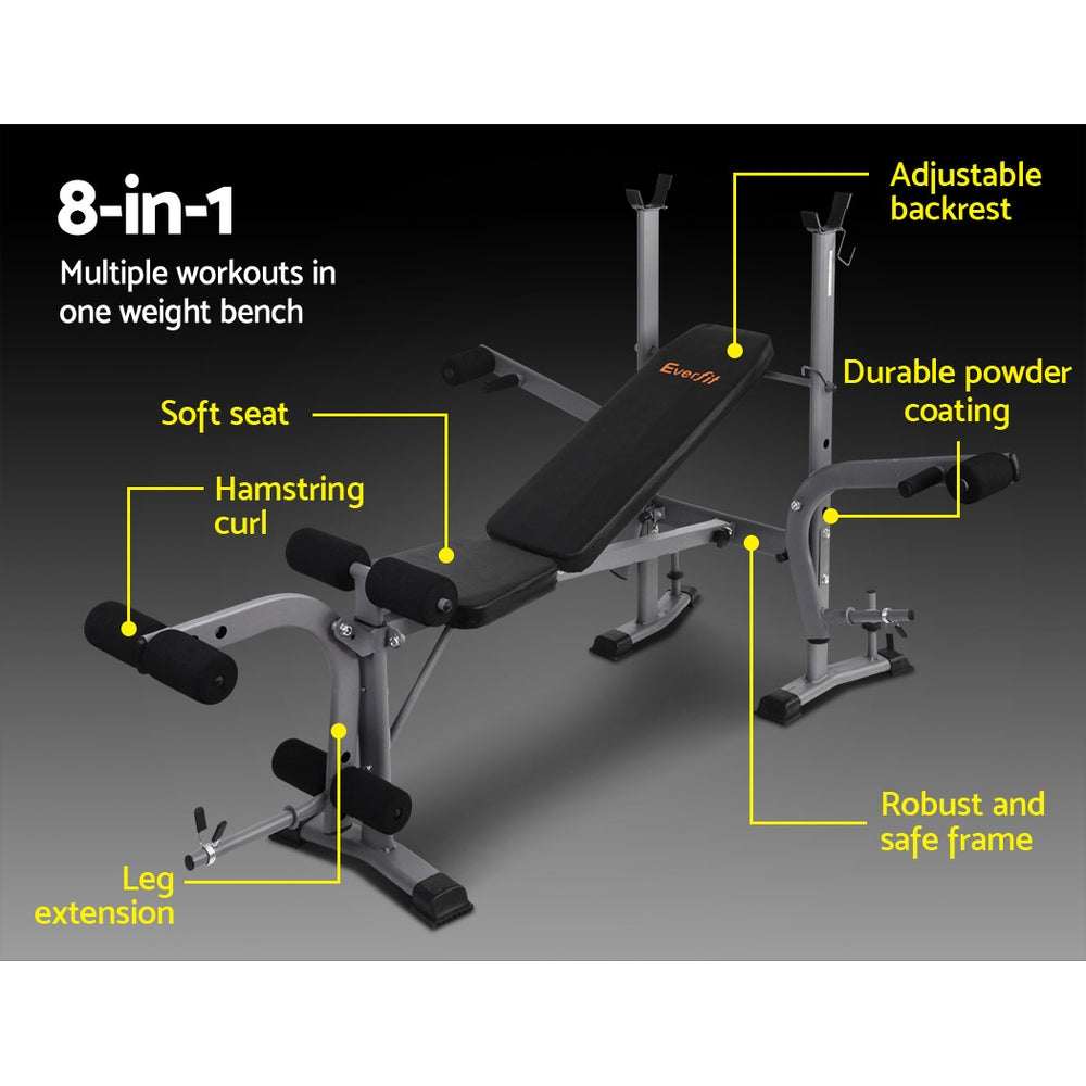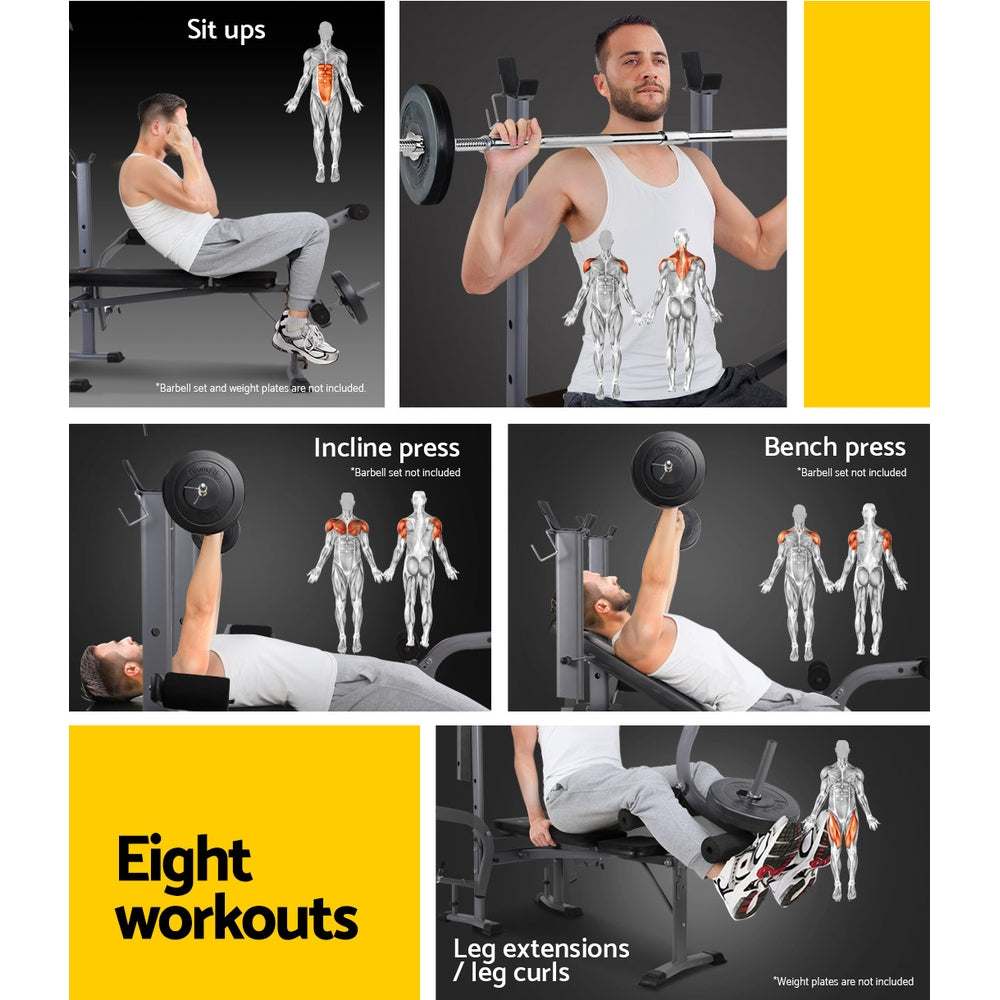 A weight bench that allows you to do all your exercises without switching multiple machines. Throughout your workout, you can do military press, bench press, incline press, chest flys, leg curls and lying leg curls. All in one bench, maximise your workout time with optimised safety feature.