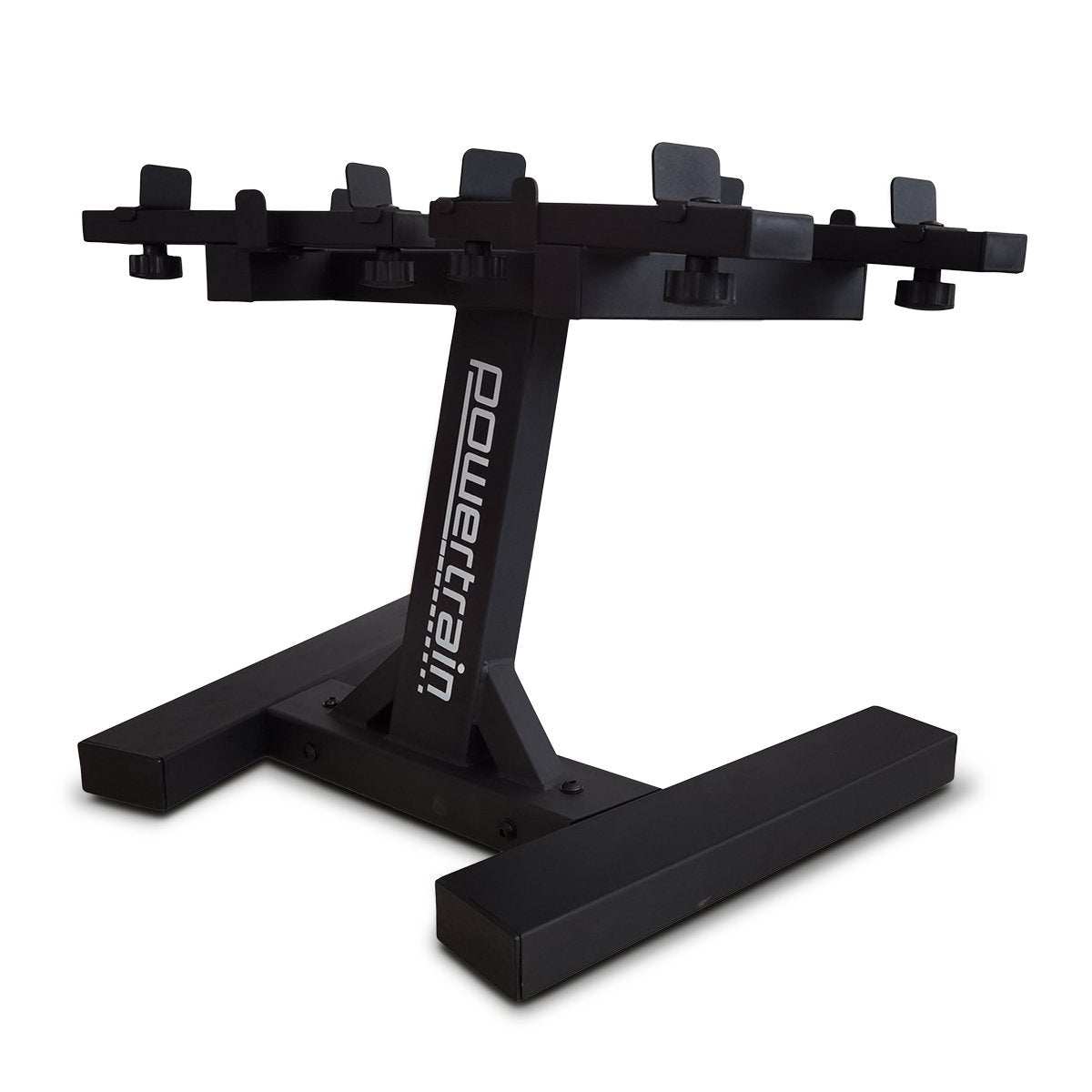 Powertrain Adjustable Dumbbell Stand GEN2 Pro, ergonomic design, supports GEN2 Pro dumbbells, black finish.