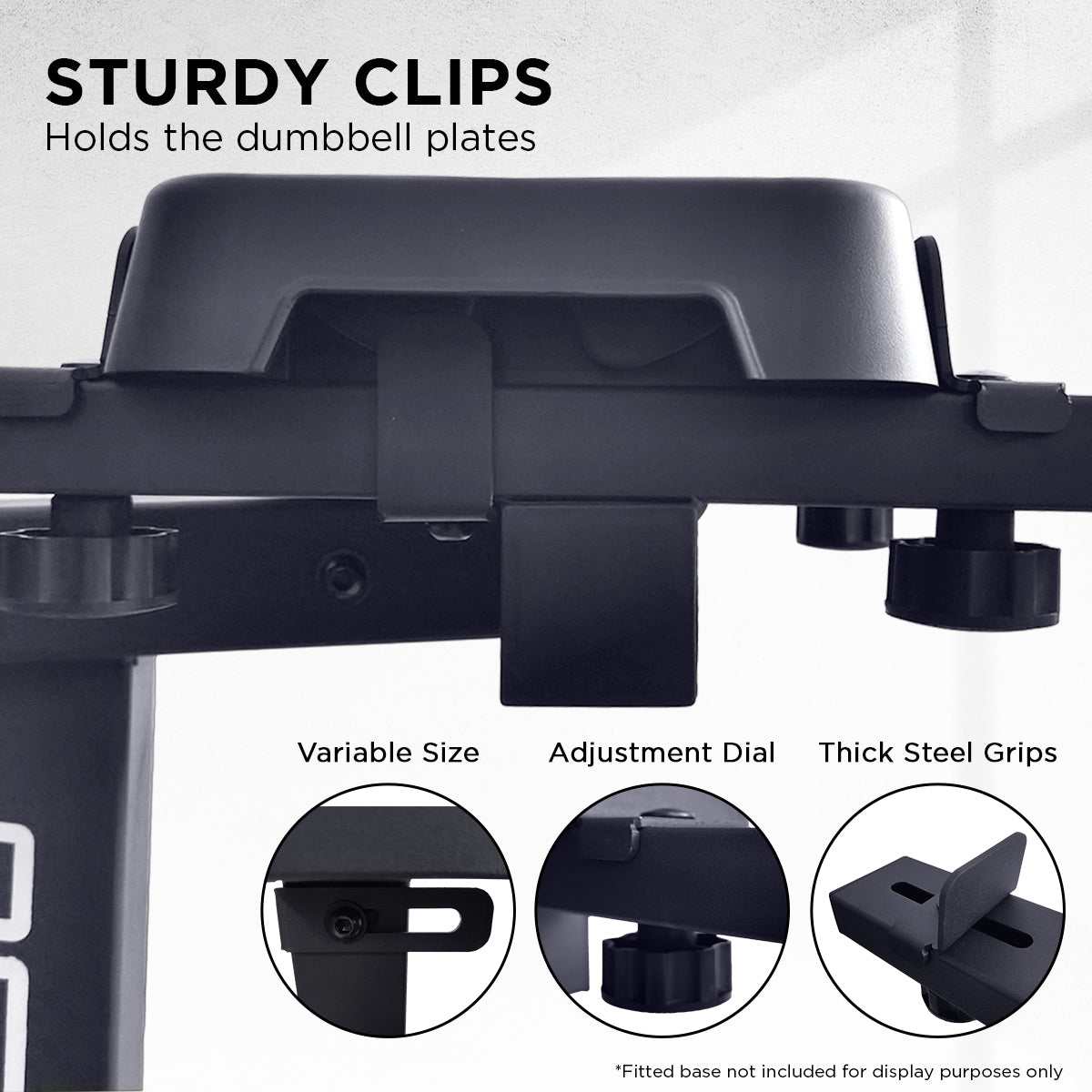 Powertrain Adjustable Dumbbell Stand GEN2 Pro with sturdy clips and adjustable grips.