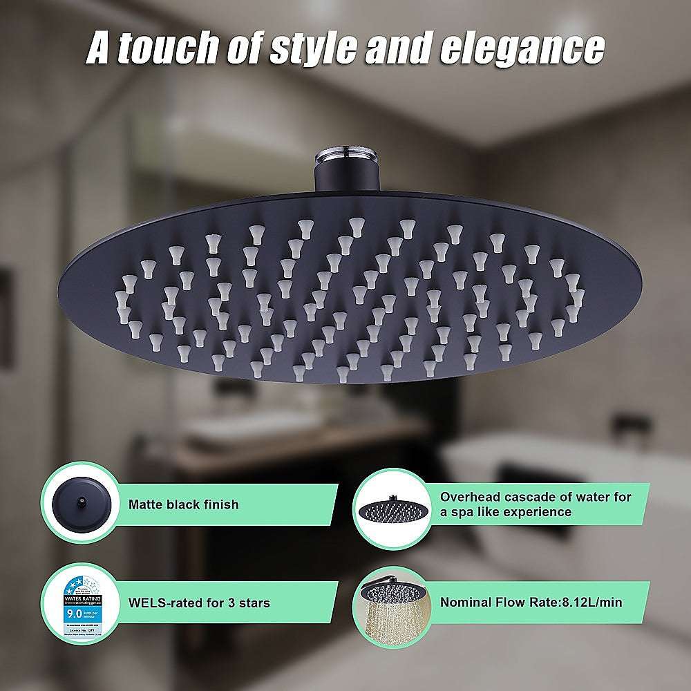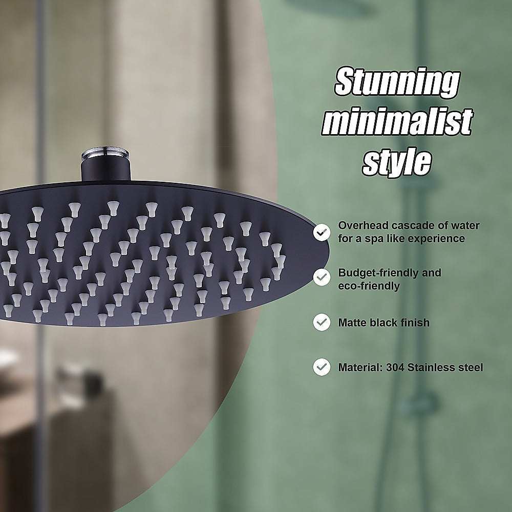 This Rain Shower Head is designed to fit a standard shower thread, and the electroplated matte black finish will give this shower head a chic, sleek look.