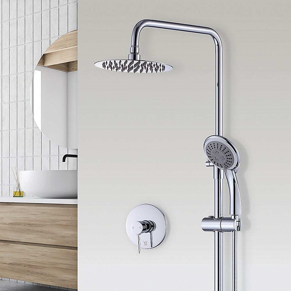 WELS 8" Rain Shower Head Set with Rounded Dual Heads and Mixer, High Pressure Faucet.