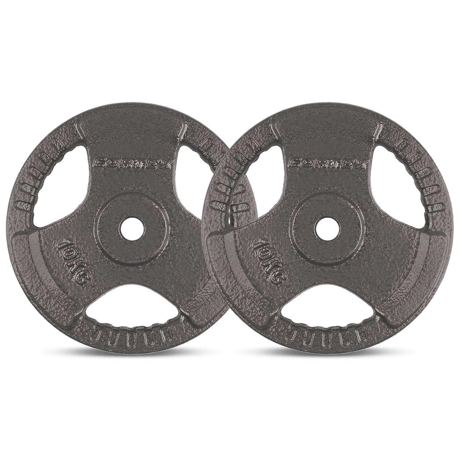 Weights & Bar: 2 x 10kg Cast Iron Tri-Grip Weight Plate