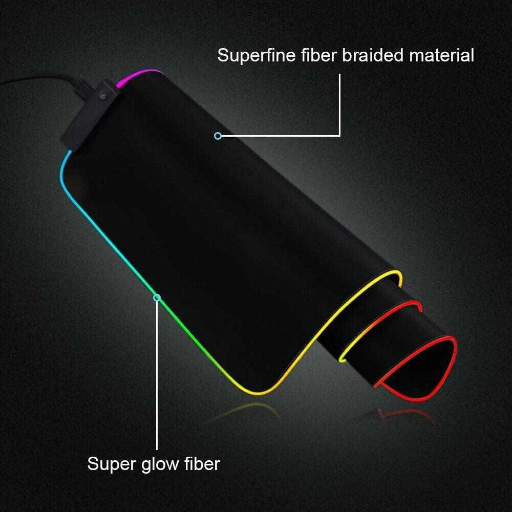 LED gaming mouse pad with RGB lights, anti-slip, large size, extended keyboard mat.